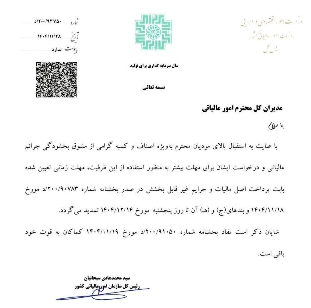 ✅ تمدید مهلت بخشودگی ۱۰۰ درصدی جرایم مالیاتی تا سقف ۷۰۰ میلیون تومان