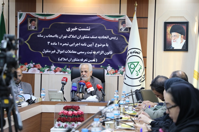 نشست خبری کیانوش گودرزی با اصحاب رسانه با موضوع آیین نامه اجرایی تبصره ۱ ماده ۳ قانون الزام به ثبت رسمی معاملات اموال غیرمنقول در خصوص ( تعیین تعرفه مشاوران املاک)