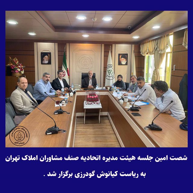 شصت امین جلسه هیئت مدیره اتحادیه صنف مشاوران املاک تهران به ریاست کیانوش گودرزی روز چهارشنبه 7 آبان ماه 1404 با حضور تمامی اعضاء برگزارشد .
